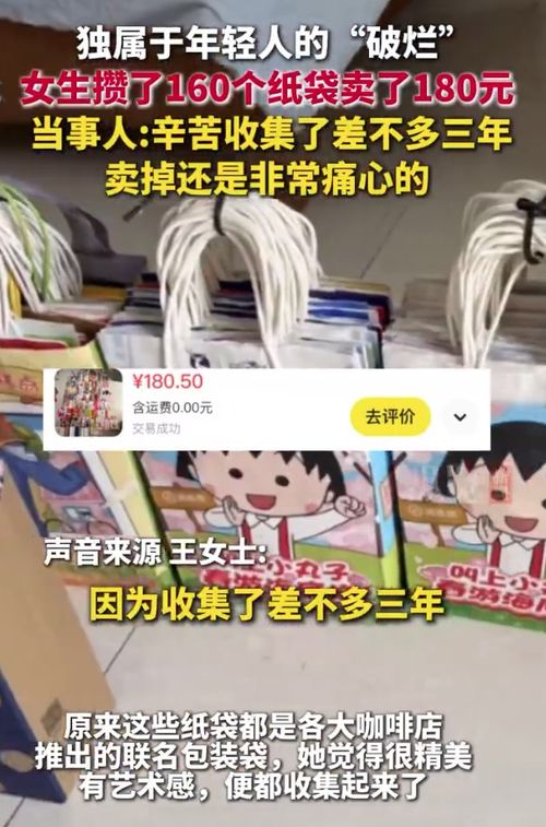 女生三年攒160个纸袋卖了180元:背后的故事令人深思 一名女生用三年时间收集160个纸袋并卖出180元,她的故事引发了网友热议。这篇文章深入剖析了她如何通过坚持与智慧实现目标,并探讨了这种行为背后的社会意义。 百度热点 2025年03月13日 01:50 0 点赞 0 评论 57 浏览
